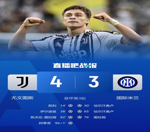 就在3天前意甲尤文主场对战国米的比赛中,尤文同样打出大比分,全场4-3逆转国米!