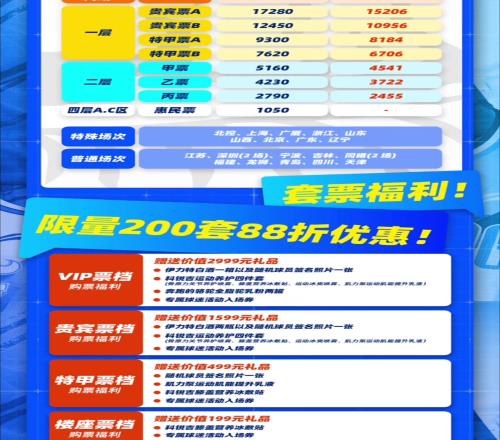 新疆伊力特男篮新赛季套票开售VIP票优惠价38544惠民票1050