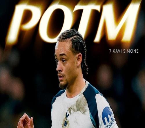 热刺官方:哈维西蒙斯当选与多特一役队内最佳球员